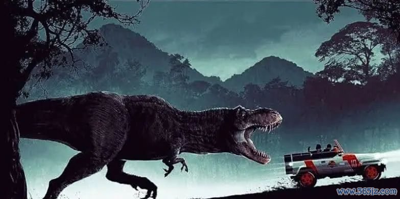 电影《侏罗纪公园》中霸王龙追捕吉普车的场景