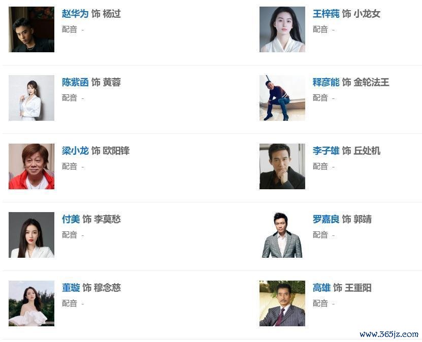 除了第一男主杨过和第一女主小龙女各自的扮演者以外,其他参演的演员齐具有很高的有名度,有些以致还称得上是巨星,而况这些巨星演员在片中各自所扮演的脚色也齐相宜不雅众心目中的形象。