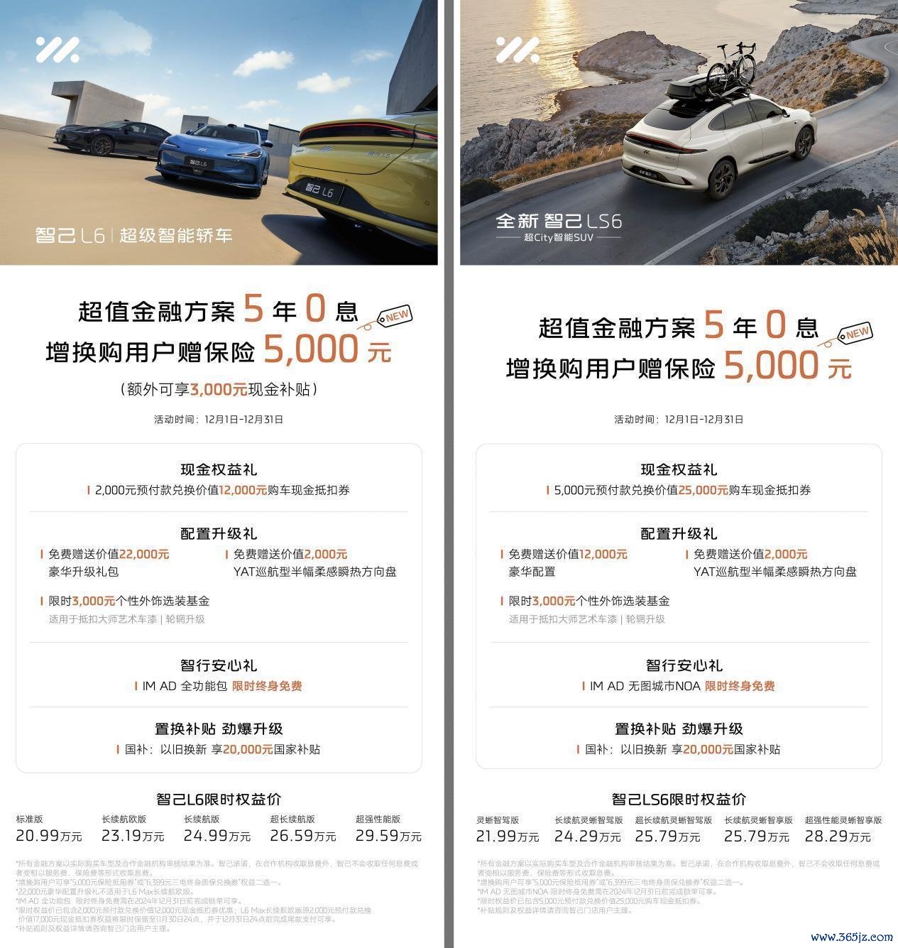 就拿这次让利最“狠”的智己汽车来说,在5年15万0息贷的优惠加执下,最低月供仅需2500元/月,日供低至83元起,购买智己L6,首付低至5.99万元;购买智己LS6,首付低至6.99万元;并迥殊提供5000元保障补贴,进一步裁汰拥车本钱。此外,价值几万元的IM AD高阶智驾亦然免费送,智己L6还能在以上优惠基础上,还能迥殊享受3000元的现款补贴,优惠确乎相等过劲。耗尽端对这次智己的让利优惠也十分招供,12月前10天,智己销量环比劲增50%,可见其精深的市集敕令力。