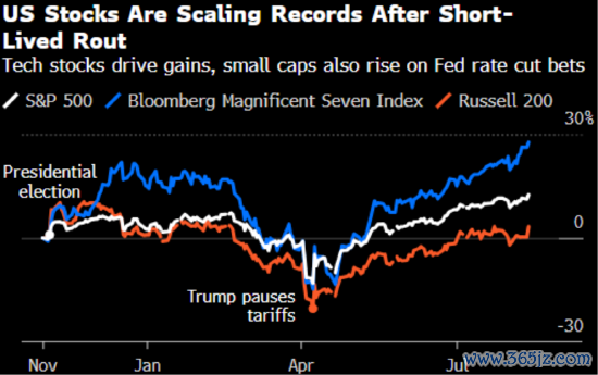 在此配景下,标普500指数重回记载高位,康健的企业盈利突显了粗拙出口税设施的有限影响。该基准指数自4月低点以来已飙升近30% —— 那时特朗普的买卖冲击激励了资金从好意思国钞票中裁撤。该指数自特朗普11月胜选以来也上升了近12%。