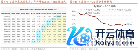 9月降息几成定局,但年内降息旅途不笃定,温暖9月议息会议上好意思联储将给出的改日经济预期和降息旅途点阵图。8月29日刚公布的PCE数据表露,7月中枢PCE同比2.88%,比拟前期的2.77%略有上行,但基本稳妥商场预期。尽管9月降息的笃定性依然比较高,但研讨到好意思国通胀存上行压力,年内的降息旅途仍存在不笃定性,当今商场对10月是否不绝降息的不合较大,是以9月议息会议好意思联储给出的引导可能是短期商场修正降息预期的要害。