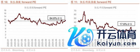用彭博的一直前向PE来看,现时恒生指数前向PE 11.2X,位于2020年于今64.6%分位,恒生科技指数前向PE 18.3X,位于指数缔造于今17.6%分位。