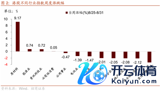 分行业看,上周港股大类行业涨少跌多,原材料行业领涨,而医疗保健、非必需破费、地产建筑领跌。