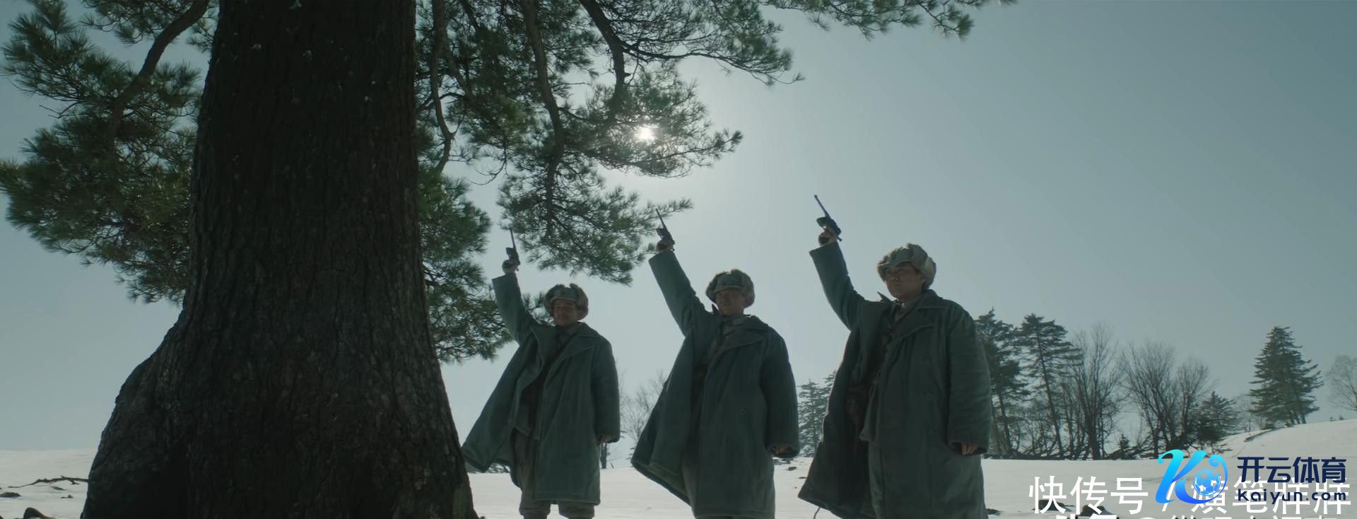 抗联小队到终末,仅存下三位战士,一同朝着“八棵松”敬礼,向抛弃的战士抒发敬意。
