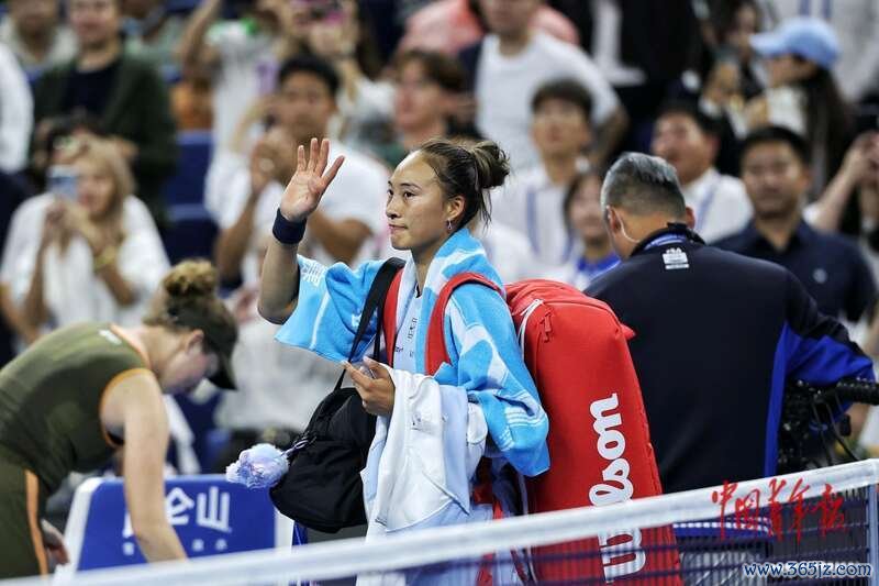 9月29日,北京国度网球中心,2025中国网球公开赛女子单打第三轮,郑钦文离场时向不雅众挥手致意。当日,赛会7号种子郑钦文在与捷克选手诺斯科娃的比赛中,在前两盘打成平手后,于第三盘因伤退赛,缺憾停步32强。中青报•中青网记者 曲俊燕/摄