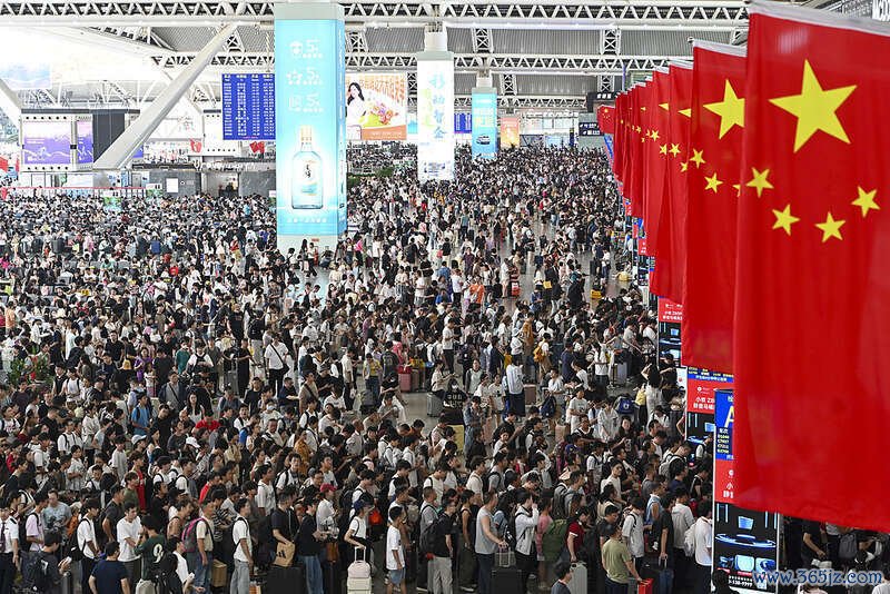10月1日,搭客在广州南站出行。本年铁路国庆中秋假期输送自9月29日至10月10日,为期12天。视觉中国供图